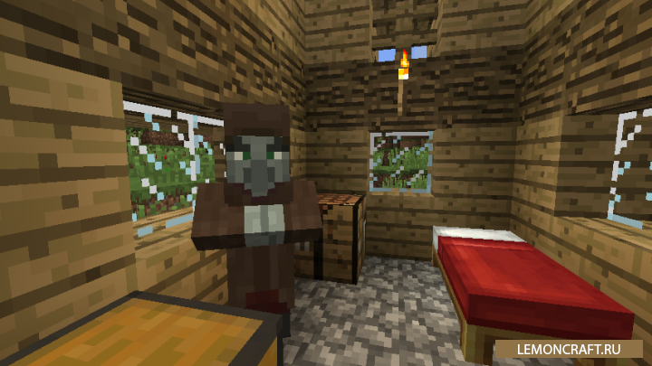 Мод на агрессивного моба HunterIllager добавит в игру нового, злого моба, внешность которого будет напоминать обычного жителя. Данный моб будет иметь свой дом и вести себя агрессивно по отношению к вам и другим мобам. Атаковать данный моб будет стрелами и при удачной атаке будет противно смеяться. Данный моб может пополнять свое здоровье за счет найденной еды.
